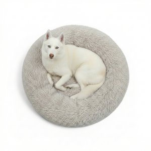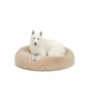 Premium Self Warming Shag Fur Calming Donut Dog Bed in Frost