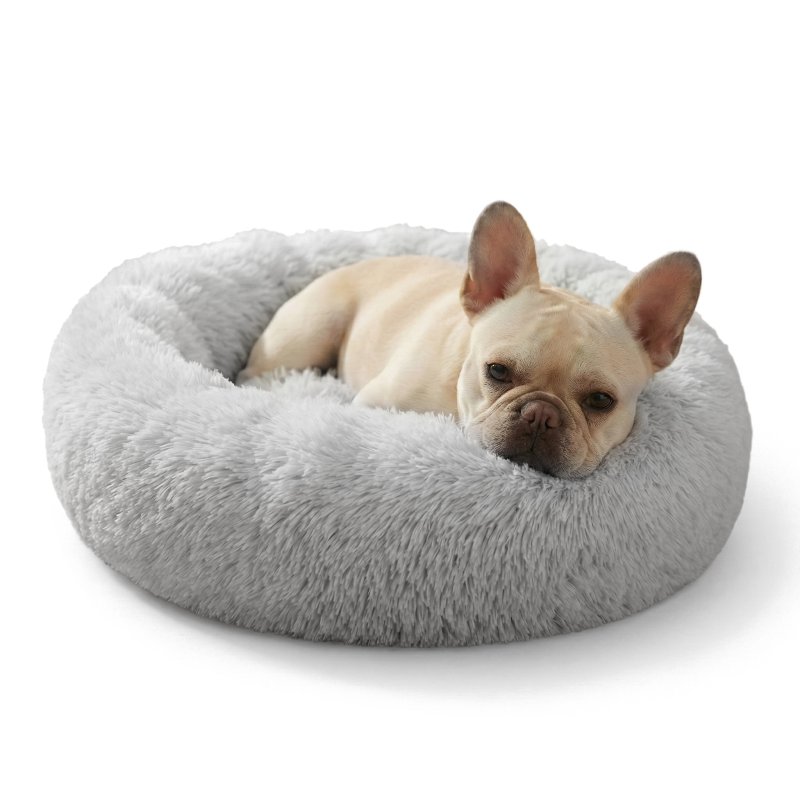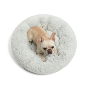 Ultra Soft Calming Donut Cuddler Shag Dog Bed with Self-Warming Vegan Fur
